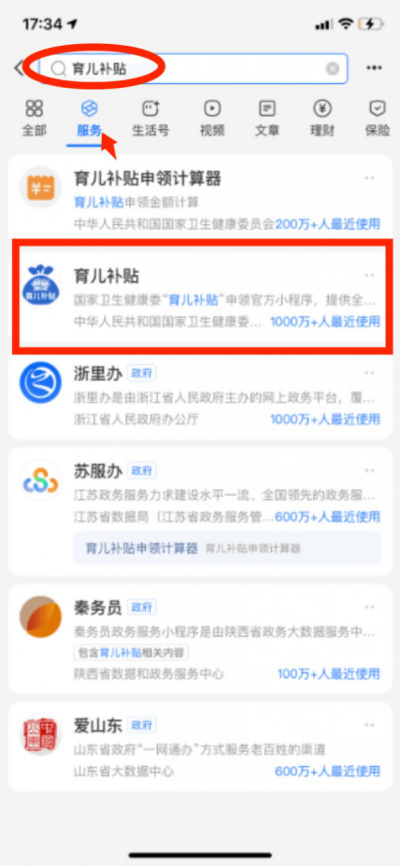 进入方式:打开微信App,搜索小程序【育儿补贴】
